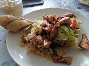 Bunter Salat mit Hähnchenbruststreifen und Kräuterbaguette Veröffentlicht am 21. Juni 2023 von admin Als Nachtisch Paradiescreme Karamell-Sahne (Per E-Mail)
